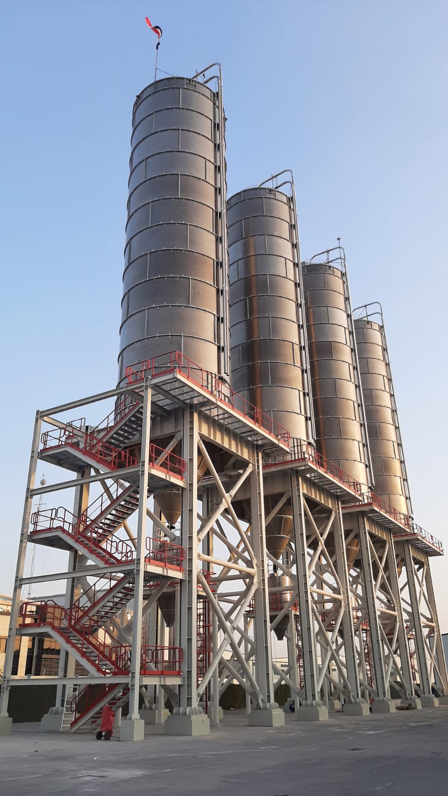 As part of the project, four massive silos, each standing 45 meters tall with a total capacity exceeding 4,000 tons, were installed through the engineering power and precision of the T-MAX technical team.